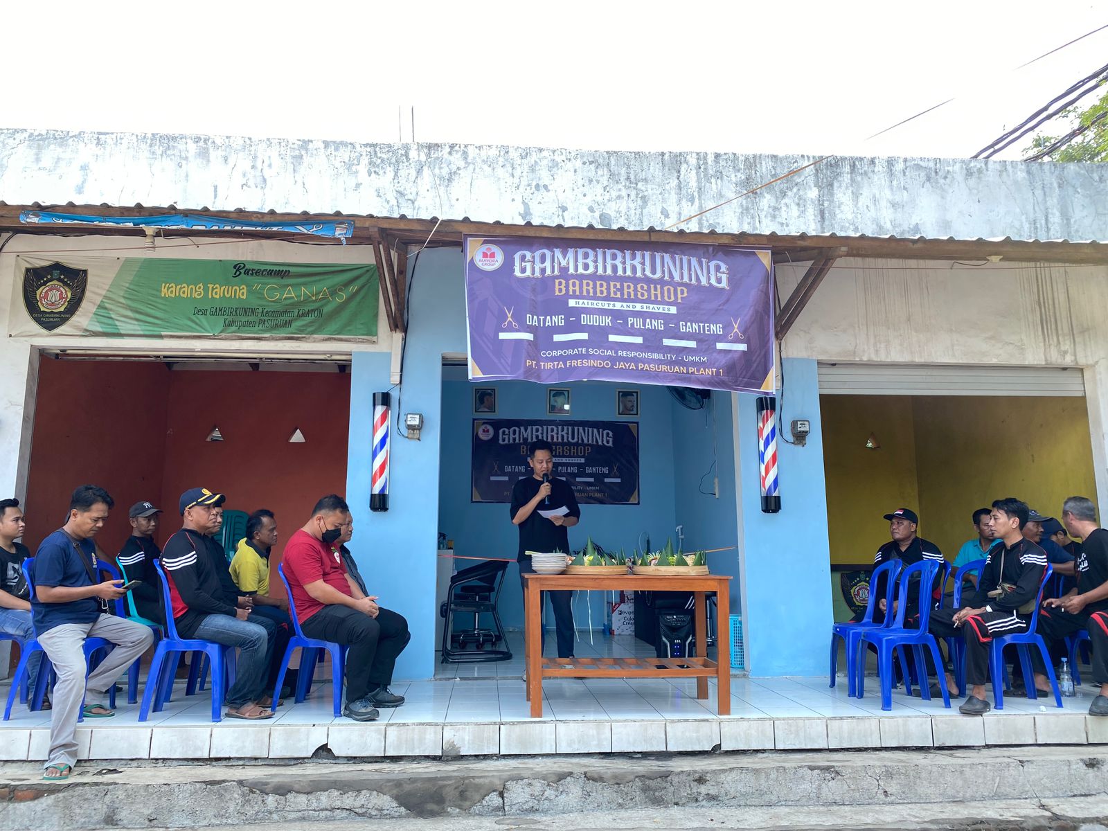 Dimana PT Tirta Fresindo Jaya Plant 1 Pasuruan menyalurkan matrial penunjang lainnya bentuk permodalan berupa pembelian 2 paket usaha barbershop, renovasi tempat barbershop, fasilitas barbershop. di serahkan ke peserta usaha UMKM di Desa Gambir Kuning, Kecamatan Kraton, Kabupaten Pasuruan, pada tanggal 8 Desember 2023.