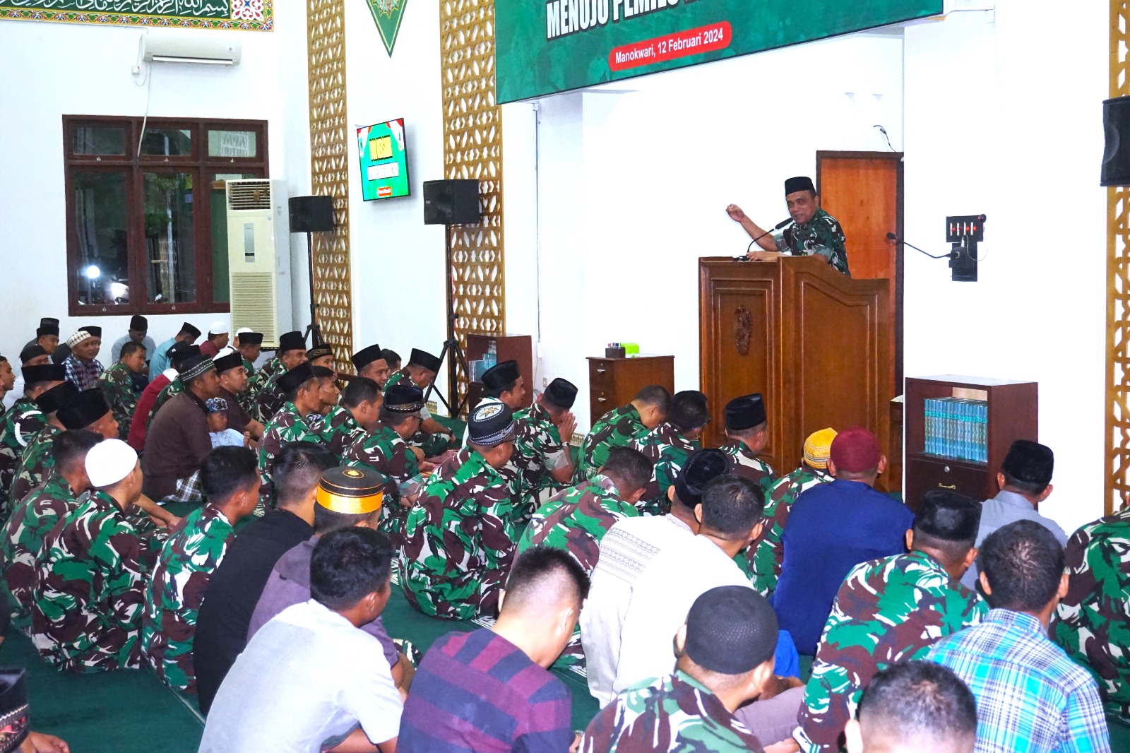 “Satu hal yang ingin saya tekankan bahwa dalam waktu yang semakin dekat dengan Pemilu ini, bahwa prajurit sekalian agar tetap menjaga Netralitas TNI, selain itu seluruh prajurit jajaran Kodam XVIII/Kasuari agar melaksanakan siaga pengamanan Pemilu”.