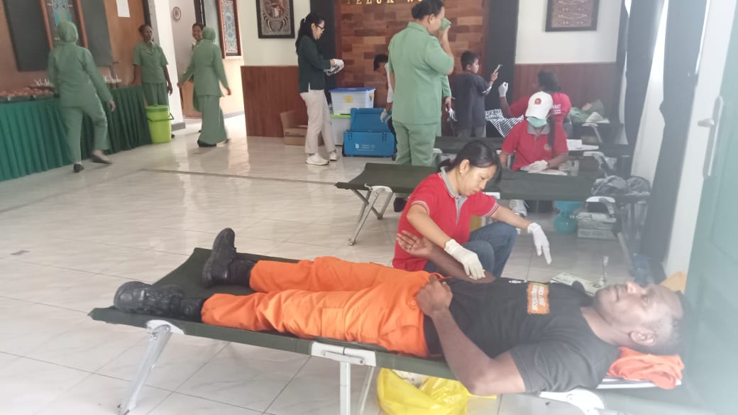 Teluk Wondama. realitapublik.id – Kodim 1811/Teluk Wondama menyambut Hari Ulang Tahun (HUT) ke 78 Persit Kartika Chandra Kirana (KCK) dengan menyelenggarakan kegiatan donor darah, di Aula Kodim, Teluk Wondama, Wasior, Papua Barat, pada Selasa (27/2/2024).