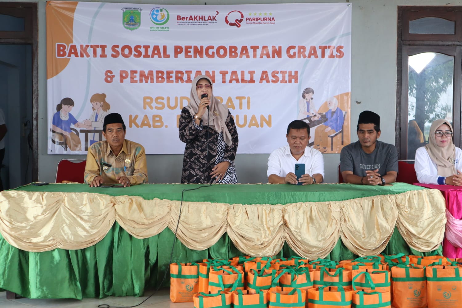 Pengobatan gratis ini dan pemberian talih asih digelar di Kecamatan Grati, yakni di Balai Desa Kedawong Kulon, dengan melibatkan Humas RSUD Grati dan jajarannya seperti dokter umum, perawat, apoteker hingga fisioterapis.