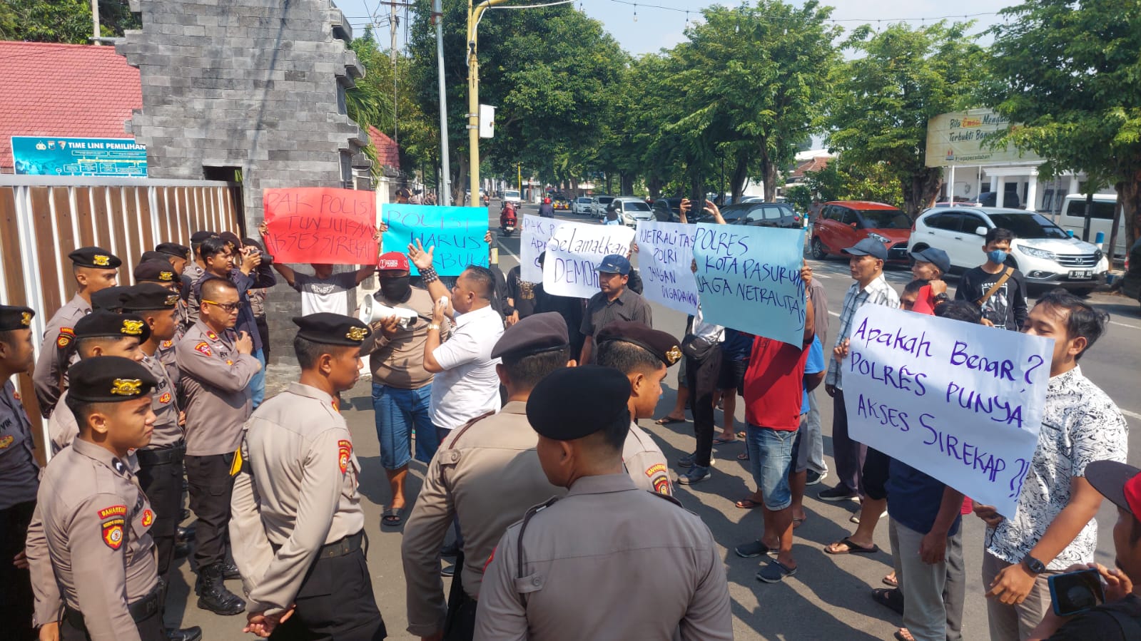 Pada kesempatannya, Ketua Aliansi Masyarakat Kota Pasuruan yaitu Ayik Suhaya menyampaikan langsung pada pokok inti kejelasan terkait adanya isu-isu netralitas POLRI di media sosial dan mempertanyakan aparat Kepolisian bisa membuka akses Sirekap dan merubah formulir C1 serta bukti pengakuan mantan Wakapolri soal Polres terlibat kecurangan Pilpres 2024 bahwa Polres bisa mengakses sirekap.