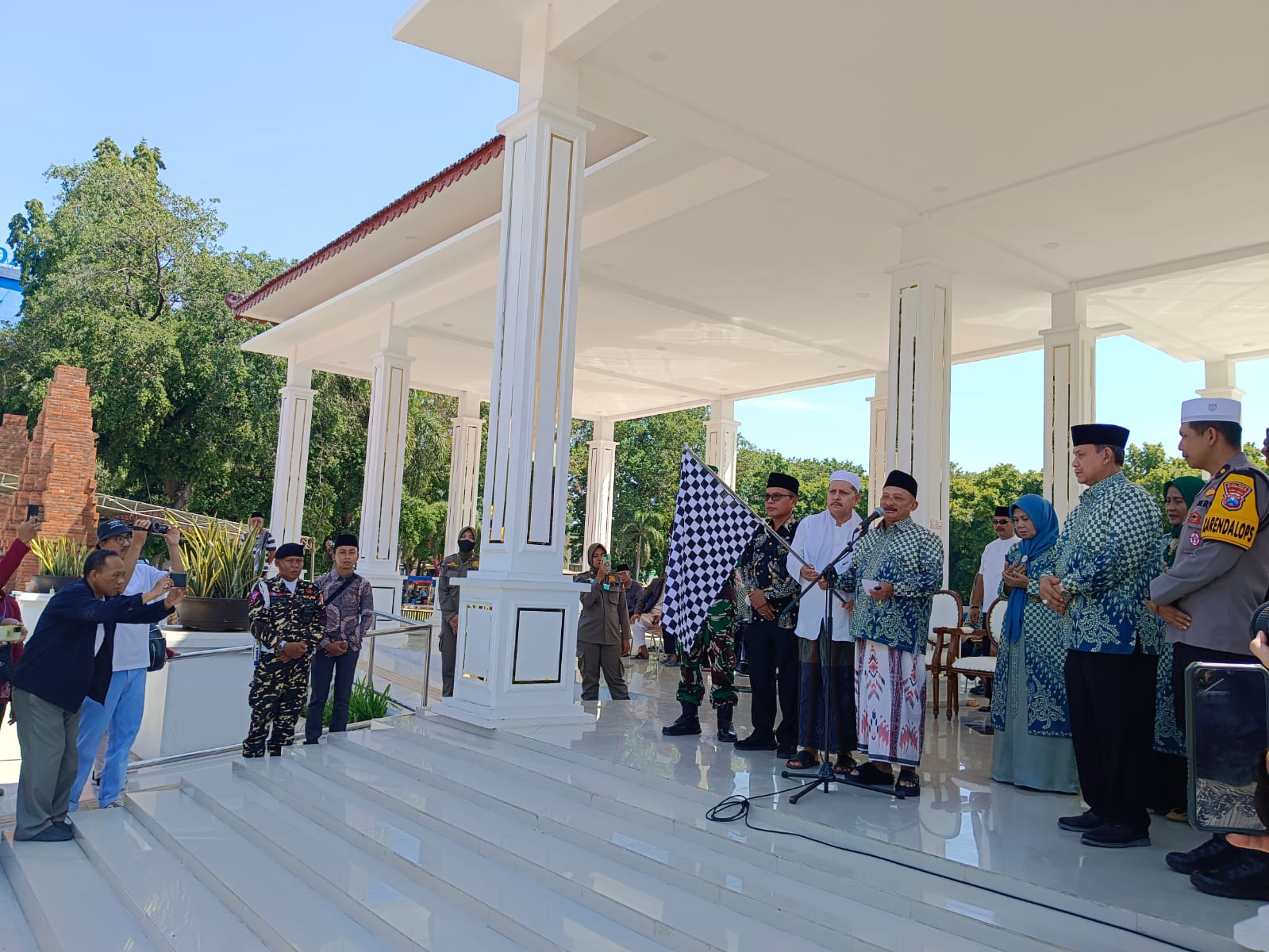Rombongan jemaah calon haji diberangkatkan oleh Bupati Situbondo Karna Suswandi dari depan Pendapa Aryo Situbondo, Jalan Kartini Situbondo.