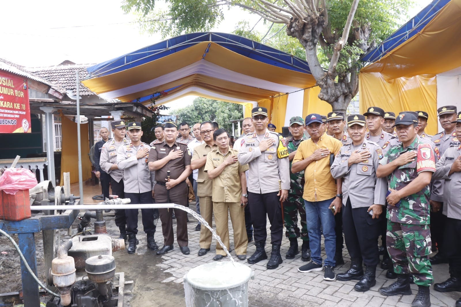 Secara simbolis penyerahan bantuan sumur bor oleh Kapolres Situbondo AKBP Dwi Sumrahadi Rakhmanto, S.H., S.I.K., M.H. kepada warga Kampung Tangsi Desa Tanjung Pecinan Kecamatan Mangaran, Selasa (25/6/2024)
