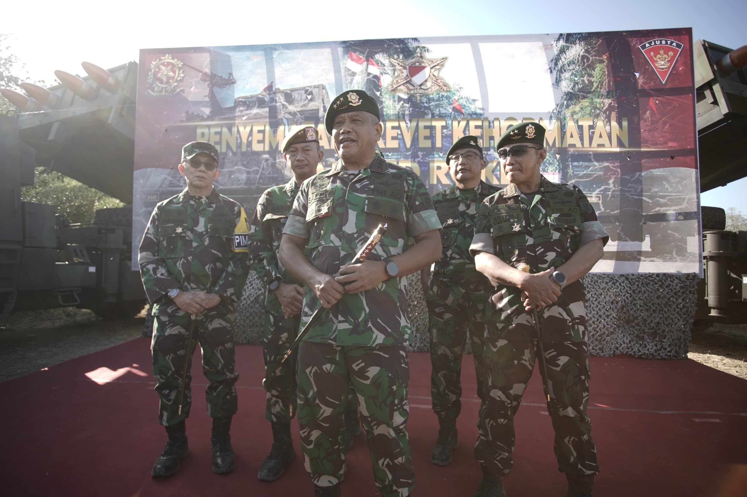 Situbondo, realitapubpik.id – Komandan Pusat Kesenjataan Artileri Medan (Danpussenarmed) Mayjen TNI Putranto Sri Handoyo menyematkan langsung Brevet Kehormatan Roket Astros kepada Pangkostrad Letjen TNI Muhammad Saleh Mustafa, Aslat Kasad Mayjen TNI Jonathan Binsar Parluhutan Sianipar, Pangdam I Bukit Barisan Mayjen TNI Muhammad Hasan, Pangdivif 2 Kostrad Mayjen TNI Anton Yuliantoro dan 3 Perwira Tinggi (Pati) lainnya bertempat di Puslatpur Marinir Baluran, Ds. Sumber Waru Kecamatan Banyu Putih, Kabupaten Situbondo, Selasa (23/7/2024).