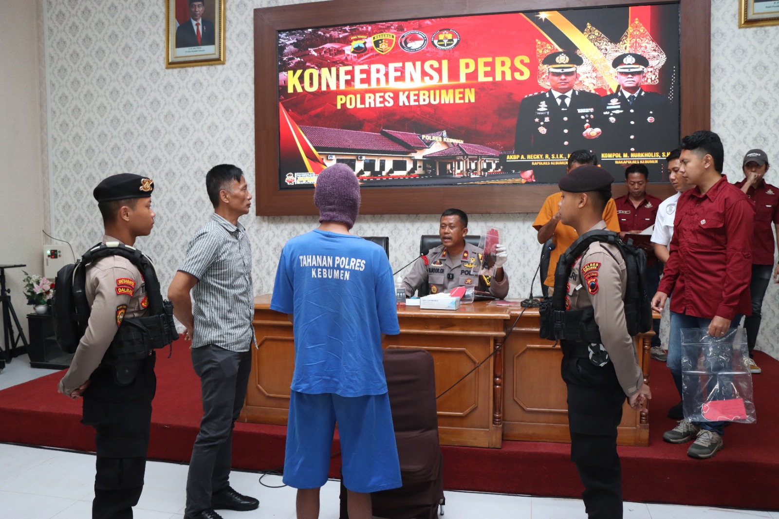 Konferensi pers Polres Kebumen terkait penangkapan kurir sabu.