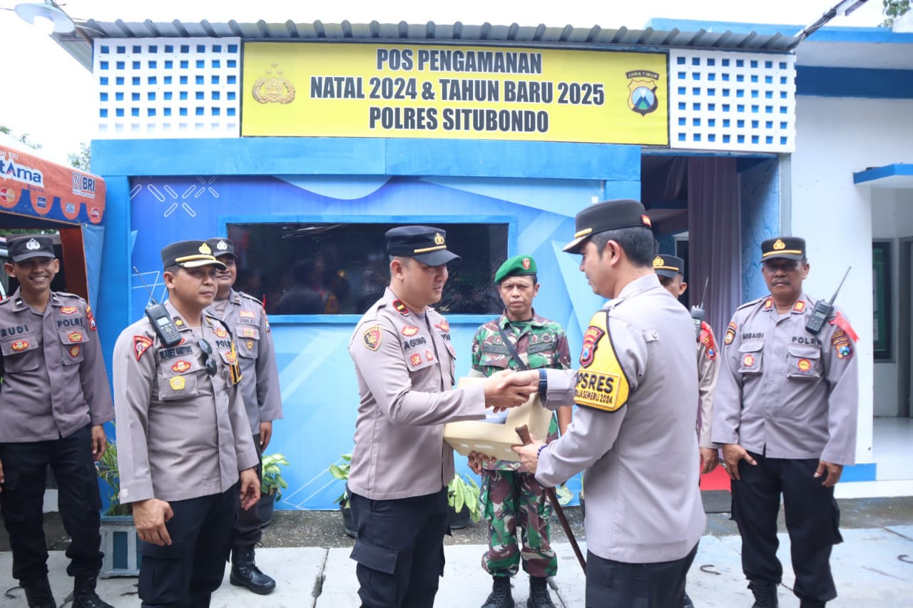 SITUBONDO realitapublik.id – Melihat langsung kesiapan Operasi Lilin Semeru 2024 dalam rangka pengamanan Nataru, Kapolres Situbondo AKBP Rezi Dharmawan, S.I.K., M.I.K., mengecek kesiapan pos pengamanan dan pos pelayanan yang berada di jalur Pantura Situbondo, Sabtu (21/12/2024)