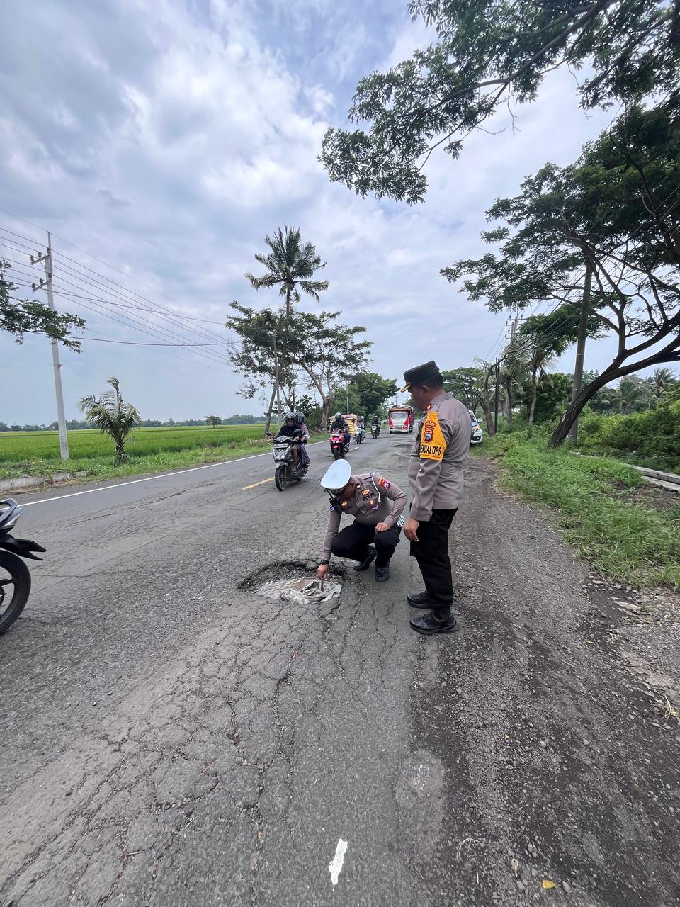 “Kita sudah mendokumentasikan dan memberi tanda dilokasi jalan rusak atau berlubang. Selanjutnya akan menyurati pihak Dinas terkait yang punya kewenangan untuk memperbaiki jalan raya pantura,” kata Kasat Lantas AKP Andy Bahtera Indra Jaya.