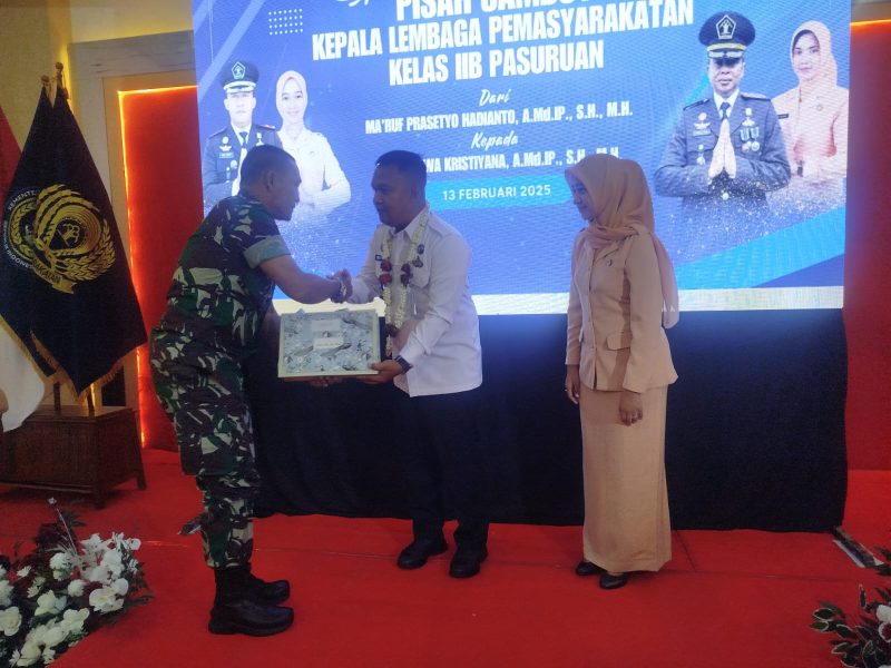 PASURUAN realitapublik.id – Perwira Penghubung (Pabung) 0819/Pasuruan Mayor Czi Slamet Djoko Wahono Menghadiri acara pisah sambut Kalapas Kelas IIB Pasuruan dari Ka Lapas Lama Ma’ruf Prasetyo, A.Md.IP.,S.H., M.H. kepada Ka Lapas Baru Tri Wibawa Kristiyana, A.Md.IP., S.H., M.H. Acara pisah sambut di laksanakan di Aula Sahardjo Lapas IIB Pasuruan Jl. Panglima Sudirman No. 4 Pasuruan Kamis, (13/02/2025).