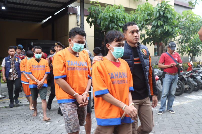 Untuk tersangka yang berhasil diamankan dalam kasus pengoplosan LPG di Gudang Sepande, antara lain HNY (41 tahun), MJK (22 tahun), ACM (27 tahun), P (38 tahun) dan satu tersangka lagi di gudang Jenggolo yakni TG (62 tahun).