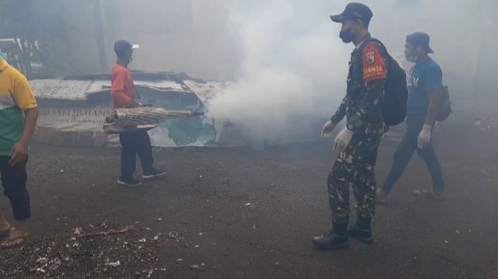 “Adapun kegiatan fogging difokuskan pada area pemukiman warga yang berpotensi menjadi tempat berkembang biak nyamuk” ucap Serda Jainul Mustofa.