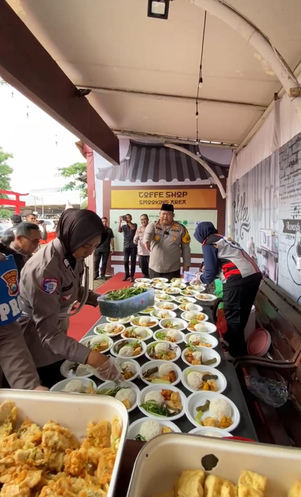 Setiap pemudik yang singgah di pos ini tak hanya menikmati fasilitas kesehatan, kursi pijat, dan area bermain anak secara gratis, tetapi juga mendapatkan makanan dan minuman gratis yang disediakan langsung oleh petugas.