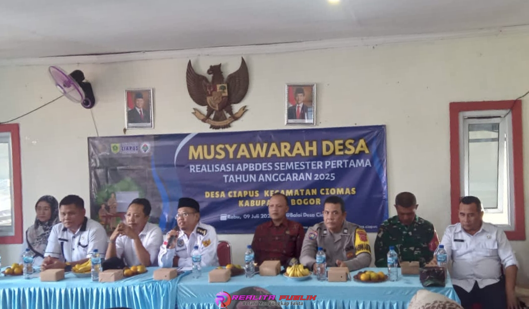 Bogor, realitapublik.id – Aula Kantor Desa Ciapus, Kecamatan Ciomas, Kabupaten Bogor menjadi tempat Musyawarah Desa (Musdes), Rabu, 09 Juli 2025. Musdes Ciapus yang diadakan kali ini membahas realisasi Anggaran Pendapatan dan Belanja Desa (APBDes) Tahap I Tahun Anggaran 2025 dengan tujuan untuk memastikan penggunaan anggaran desa berjalan efektif dan efisien, serta digunakan untuk kepentingan masyarakat dan meningkatkan kesejahteraan masyarakat.