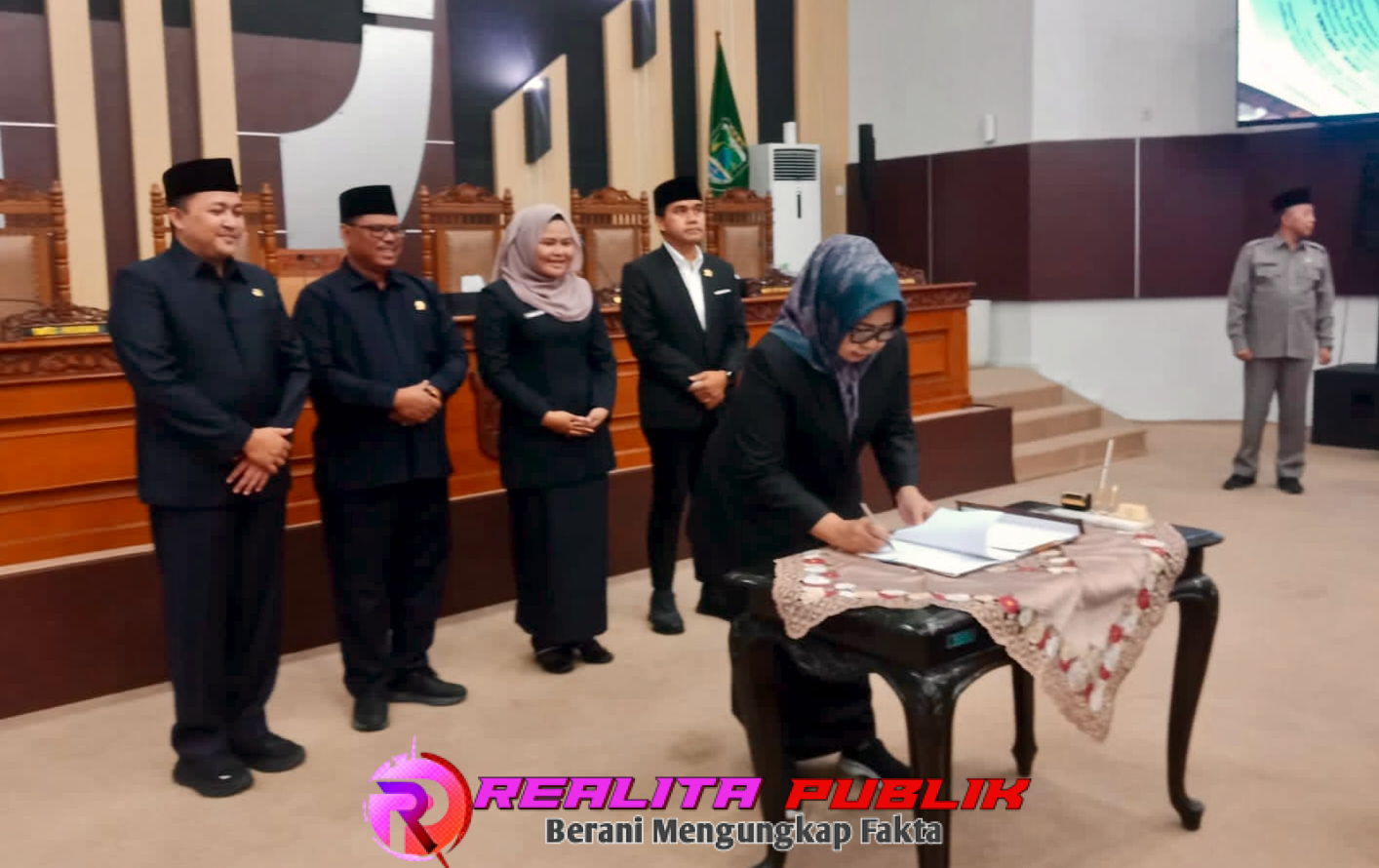 Selain pimpinan dewan, Bupati Pasuruan, Rusdi Sutejo, juga turut hadir dalam pembahasan dan pengesahan Raperda P-APBD ini.