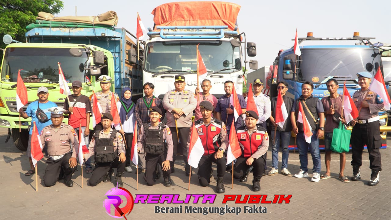 PASURUAN realitapublik.id – Menjelang peringatan Hari Ulang Tahun Kemerdekaan Republik Indonesia ke-80, Polres Pasuruan melalui Satuan Intelijen Keamanan (Intelkam) berkolaborasi dengan elemen mahasiswa Himpunan Mahasiswa Islam (HMI), LSM, dan awak media membagikan sebanyak 500 bendera merah putih kepada para supir truk di kawasan Terminal Cargo, Luwung, Kecamatan Beji, Kabupaten Pasuruan.