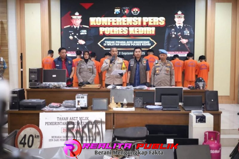 KEDIRI realitapublik.id – Polres Kediri Polda Jawa Timur (Jatim) telah menetapkan 28 tersangka kerusuhan dan penjarahan di Kantor Pemerintah Kabupaten Kediri dan Gedung DPRD pada Sabtu 30 Agustus 2025 yang lalu.