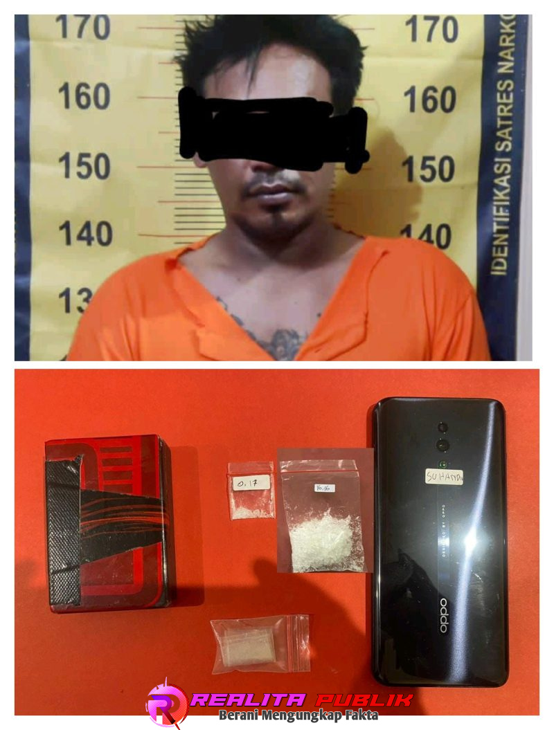 Saat penggeledahan, polisi menemukan satu kantong plastik kecil berisi sabu seberat 0,054 gram, enam plastik klip kosong, sebuah kotak merah-hitam, dan satu unit ponsel Oppo warna hitam.