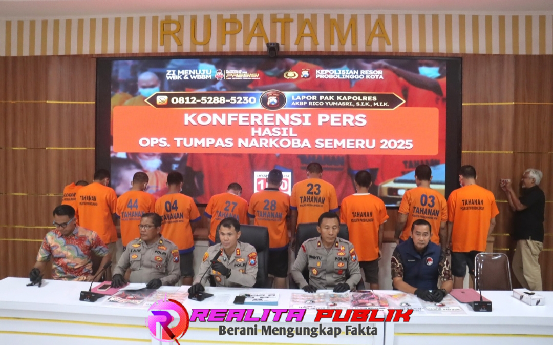 KOTA PROBOLINGGO realitapublik.id – Polres Probolinggo Kota, Polda Jatim menangkap sebanyak 10 orang tersangka kasus penyalahgunaan narkoba dari Operasi Tumpas Semeru 2025.