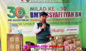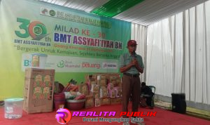 Sekretaris BMT Assyafi’ah Berkah Nasional H. Untung S.Ag., M.M., menyampaikan terima kasih kepada semua pihak atas dukungan dan partisipasinya dalam acara untuk memeriahkan milad ke-30 BMT Assyafi’ah BN (Berkah Nasional).