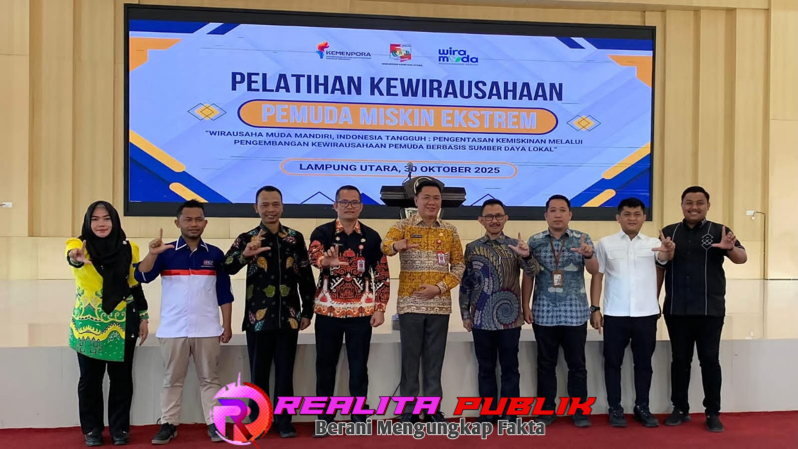 LAMPUNG UTARA realitapublik.id— Dalam upaya mempercepat pengentasan kemiskinan dan memperkuat ketahanan ekonomi daerah, Pemerintah Kabupaten Lampung Utara bekerja sama dengan Kementerian Pemuda dan Olahraga (Kemenpora) RI menyelenggarakan Pelatihan Kewirausahaan Pemuda bertema “Wirausaha Muda Mandiri Indonesia Tangguh”.kamis 30/10/2025