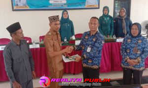 Jabatan Kepala Tiyuh diserahkan dari Pj. Kepala Tiyuh sebelumnya, Rita Utari, SKM., M.M., kepada Kepala Tiyuh terpilih hasil Pemilihan Antar Waktu (PAW), Afrika, S.H.