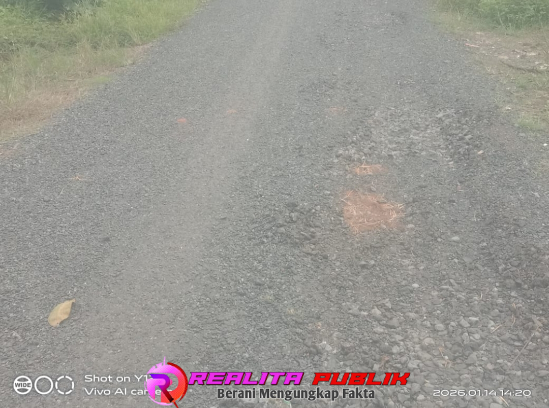 LAMPUNG UTARA, RealitaPublik.id — Kualitas pembangunan infrastruktur di Kabupaten Lampung Utara kembali menjadi sorotan tajam. Proyek jalan Lapis Penetrasi (Lapen) di Desa Cempaka, Kecamatan Sungkai Jaya, yang baru selesai dibangun beberapa bulan lalu, kini kondisinya sudah rusak parah dan hancur di berbagai titik, Rabu (14/1/2026).