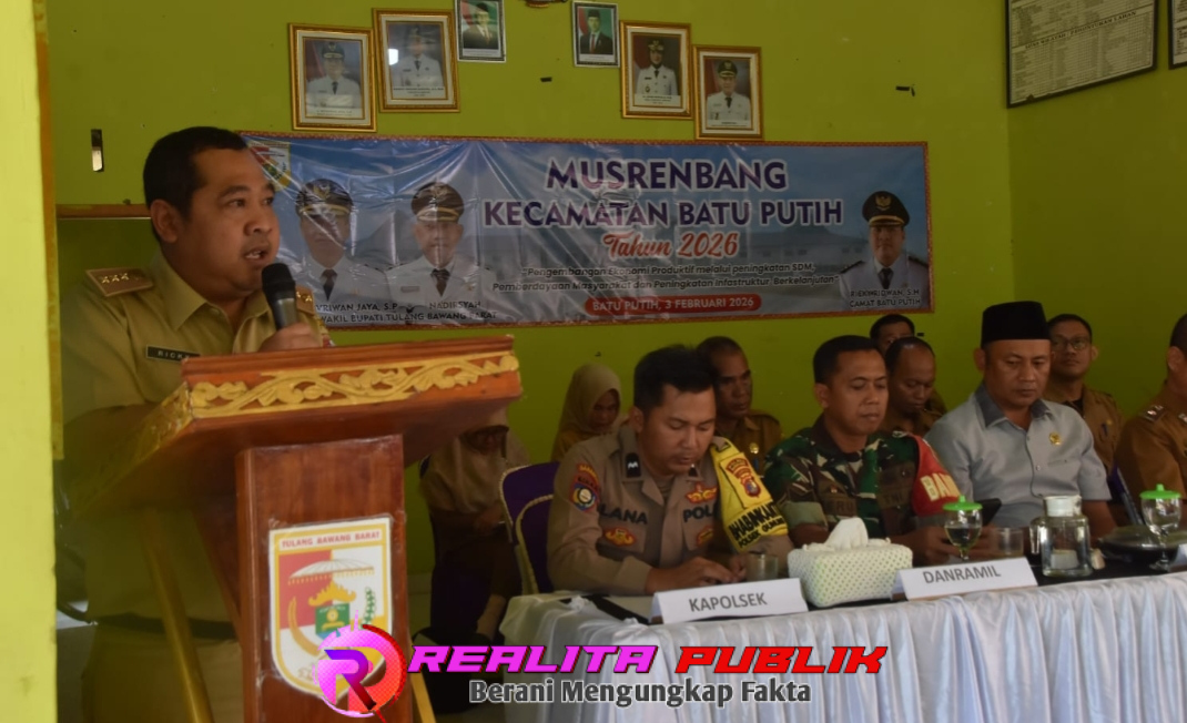 TULANG BAWANG BARAT, Realitapublik.id — Pemerintah Kabupaten Tulang Bawang Barat (Tubaba) mematangkan arah pembangunan tahun 2026 melalui Musyawarah Perencanaan Pembangunan (Musrenbang) RKPD di Kecamatan Batu Putih. Kegiatan yang digelar di Balai Tiyuh Toto Makmur, Selasa (03/02/2026), menjadi ajang sinkronisasi antara usulan akar rumput (tiyuh) dengan kebijakan strategis kabupaten.
