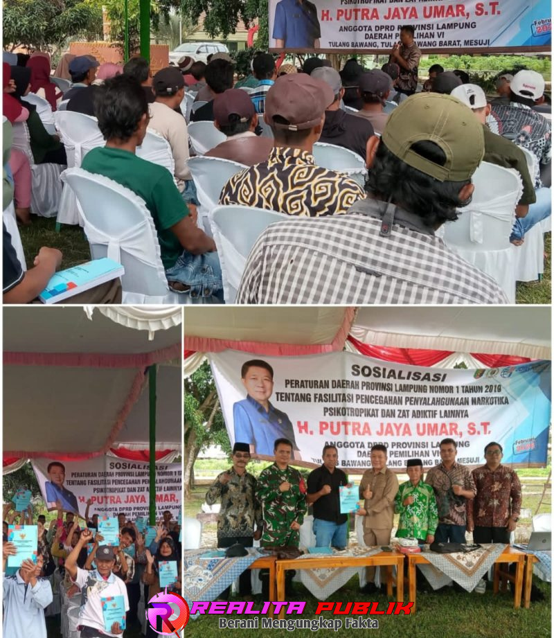 TULANG BAWANG BARAT, Realitapublik.id — Anggota DPRD Provinsi Lampung dari Fraksi Partai Golkar, H. Putra Jaya Umar, menggelar agenda strategis Sosialisasi Peraturan Daerah (Perda) Nomor 1 Tahun 2019 tentang Fasilitasi Pencegahan Penyalahgunaan Narkotika, Psikotropika, dan Zat Adiktif Lainnya.