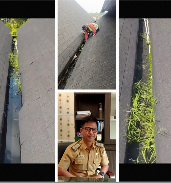 Plt. Kadis PUPR, Ir. M. Iwan Setiawan, melalui Kabid Cipta Karya, Nurul Azmi, ST., MT., menjelaskan bahwa intensitas hujan yang tinggi dalam beberapa hari terakhir memicu endapan lumut menyumbat saluran pembuangan, sehingga air meluap ke area gedung.