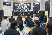 Pasuruan _ Rapat kerja tahunan Senkom Mitra Polri Kota Pasuruan yang dilaksanakan di Aula Baitul Muhajirin Krampyangan Kota Pasuruan pada tahun 2025 saat…