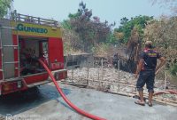 Sejumlah petugas dengan satu Unit mobil Damkar Besuki dikerahkan untuk menjinakkan api yang kembali membakar gunungan sampah di Dusun Jetis Randu, Desa Jetis, Kecamatan…